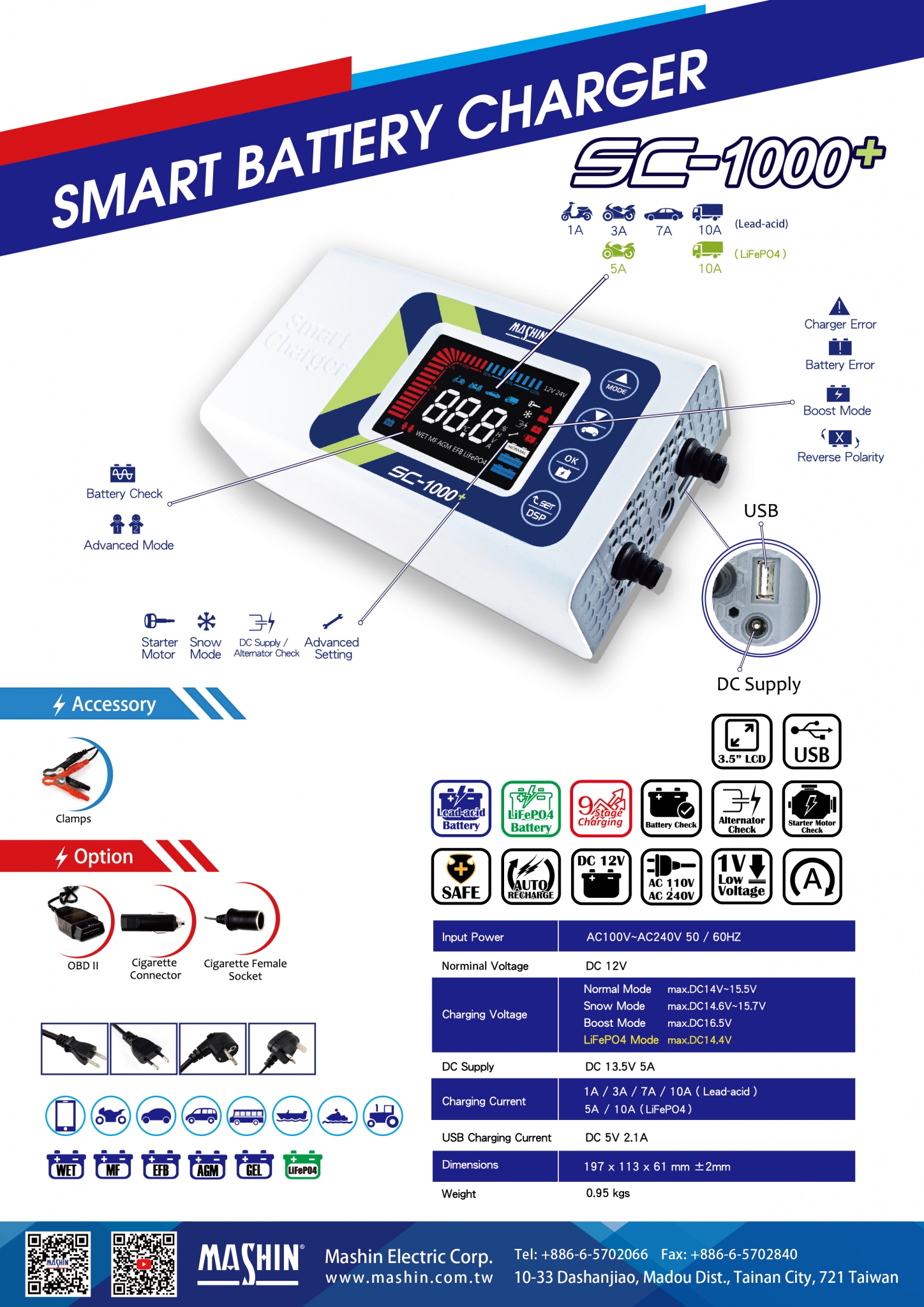 | Battery Types | WET/MF/AGM/EFB/GEL |
