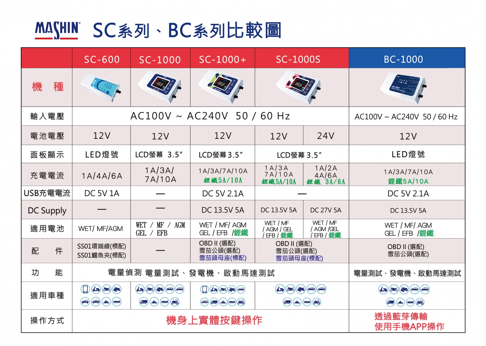 這次把SC、BC機型的重點規格、功能等資訊