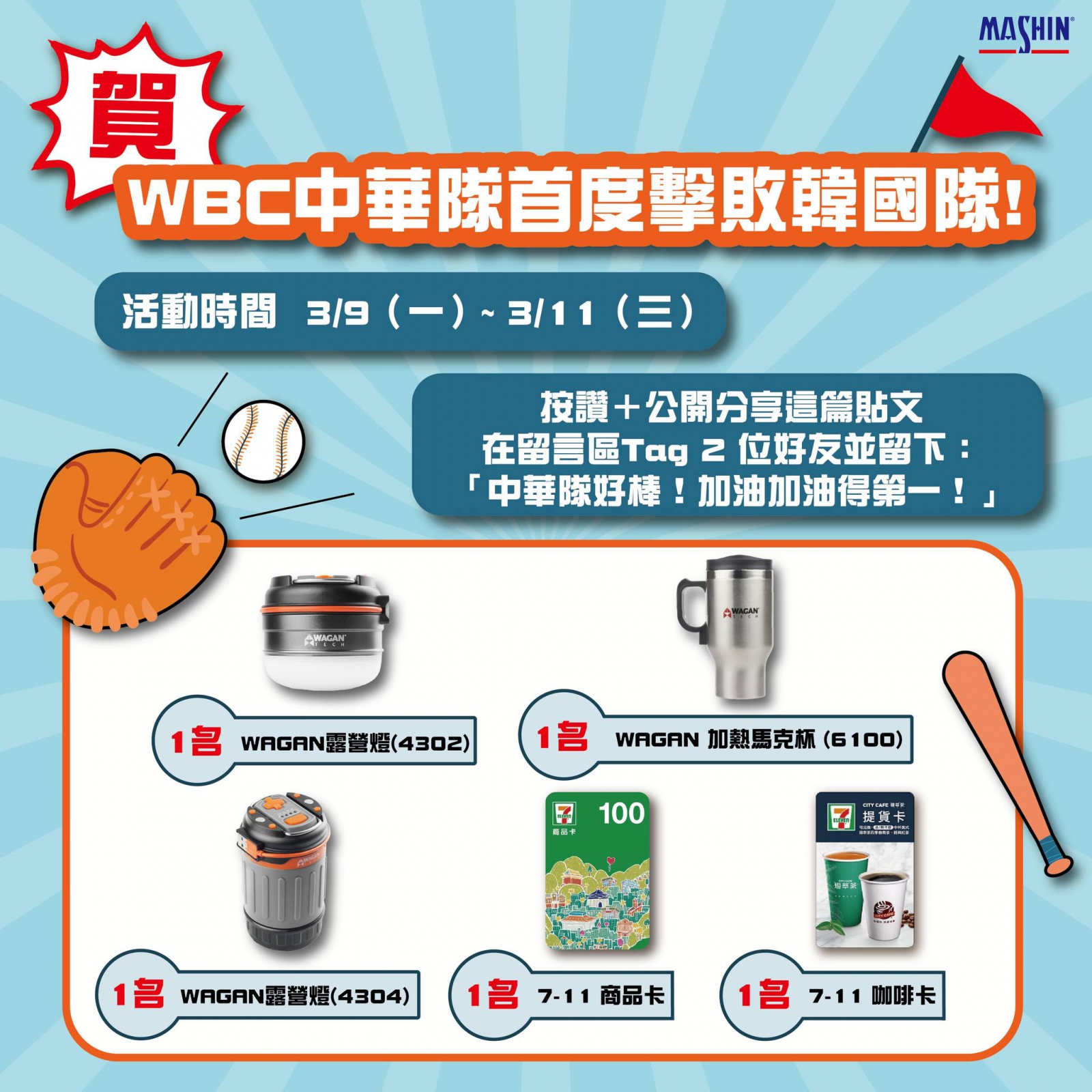 在留言區Tag 2 位好友並留下:「中華隊好棒!加油加油得第一!