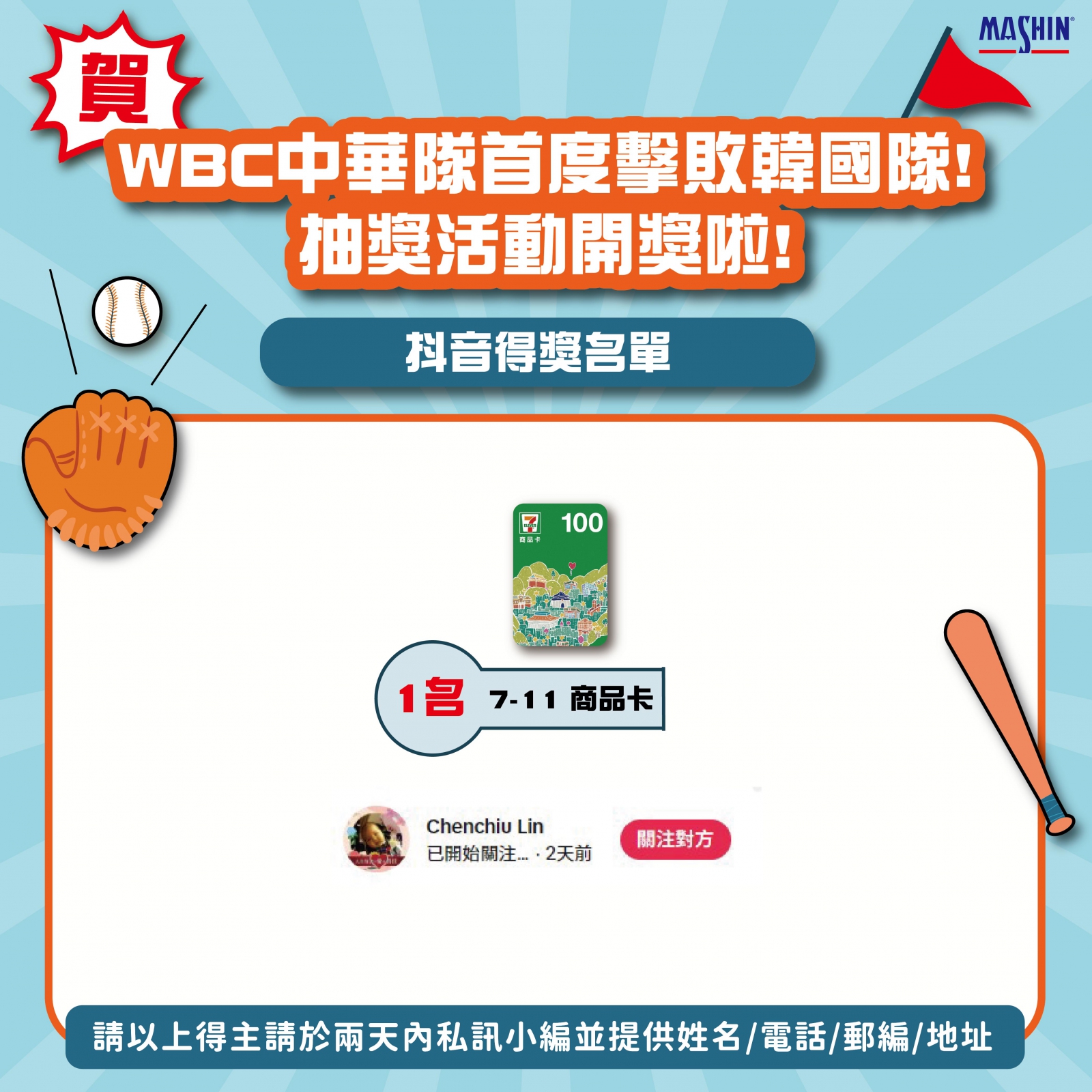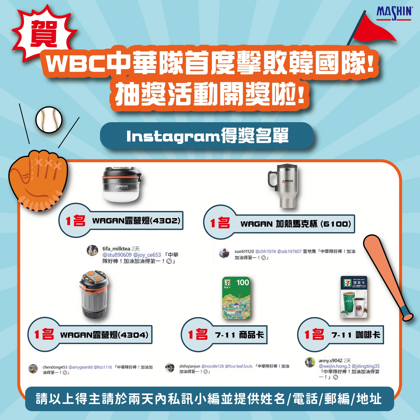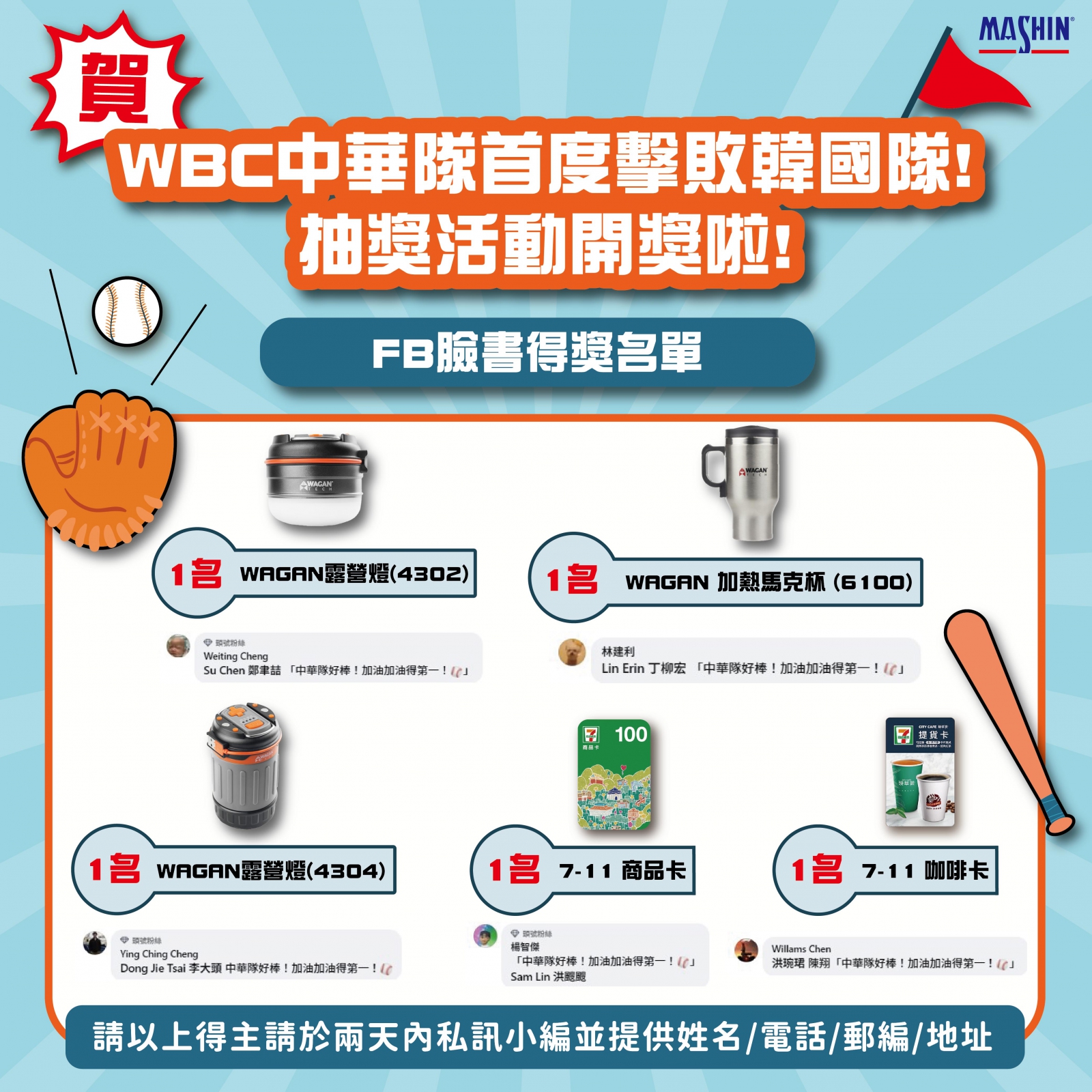小編來公布這次【WBC 中華隊熱血應援抽獎活動】的得獎名單囉