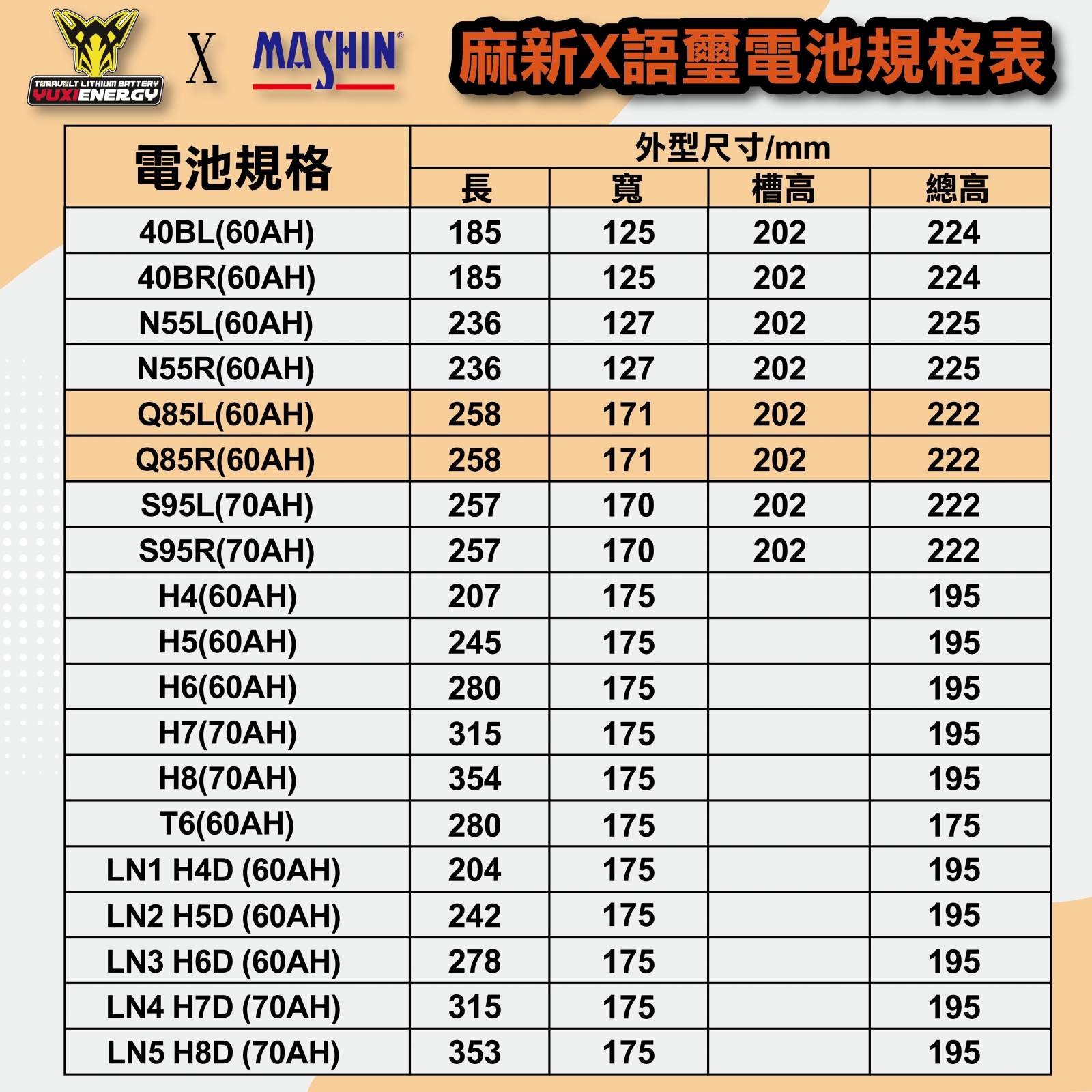鋰電池專用 鋰電池專用語璽鋰鐵電池 Q85 (L)(R)Q85 (L)(R)適用車種適用電池 鋰鐵電池 產品詳細介紹 產品介紹 產品規格 面板介紹 說明書 產品介紹 適用車輛品牌 ◎HINO ◎ISUZU ◎MITSUBISHI ◎SUBARU ◎Toyota 產品規格Q85(LR)安培小時(AH)60 尺寸(L*W*H)232 x 175 x 222 mm 面板介紹 說明書檔案名稱更新日期檔案下載影片播放!資料建構中... RECOMMENDATION 語璽鋰鐵電池 N55 (L)(R) 語璽鋰鐵電池 H5 語璽鋰鐵電池 H6 LFP系列 48V 6A電池充電器 (鋰鐵) 語璽鋰鐵電池 H7 LFP系列 48V 15A電池充電器 (鋰鐵) 語璽鋰鐵電池 H8 LFP系列 24V 15A電池充電器 (鋰鐵) 語璽鋰鐵電池 H4 語璽鋰鐵電池 40B (L)(R) SC-1000+ 智慧型 鉛酸/鋰鐵電池 雙模充電器 語璽鋰鐵電池 S95 (L)(R) SC-1000S 智慧型 鉛酸/鋰鐵電池 12/24V 雙模充電器 LFP系列 24V 12A電池充電器 (鋰鐵) BACK TO LIST